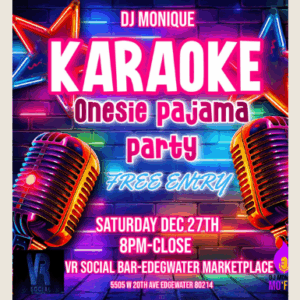 Saturday, December 27, 2025 8 p.m. to 2 a.m. FREE ENTRY It’s a Karaoke Pajama Party night at VR Social! Bring friends for fantastic music, dances, and drinks!