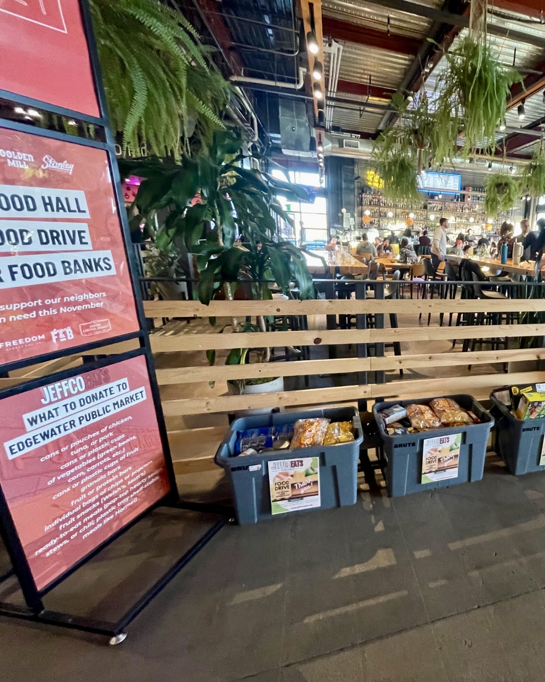 A Food Hall Food Drive for Food Banks will run throughout November at Edgewater Public Market in Edgewater; The Golden Mill in Golden; Stanley Marketplace in Aurora; Freedom Street Social in Arvada; and Denver Central Market and Avanti Food & Beverage in Denver.