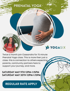 Twice a month with Cassandra for 75 minute Prenatal Yoga class. This is more than just a class. This is a connection to others expecting parents, community partners here to support your journey, and more.