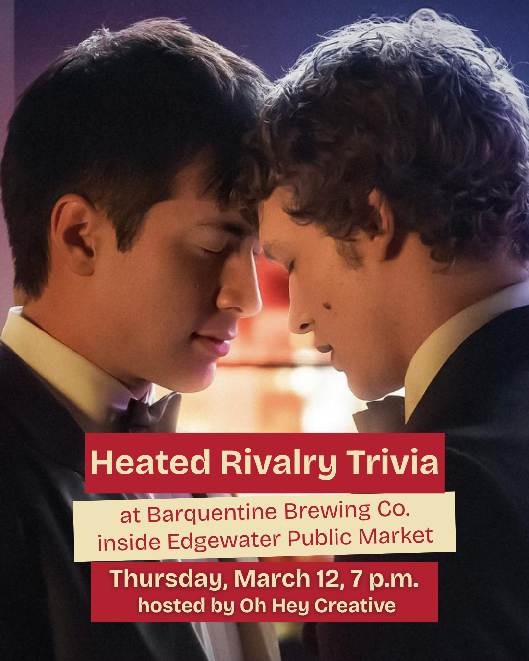 We’re going to the cottage again! Join us for Heated Rivalry trivia at Barquentine Brewing inside Edgewater Public Market, hosted by Oh Hey Creative.